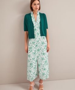 Liliana Cotton Blend Maxi Dress – Green Palm Floral Print