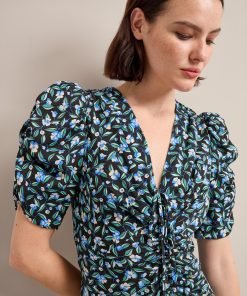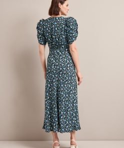 Ophelia Bias Cut Maxi Dress – Black Blue Deco Floral Print