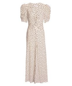 Ophelia Bias Cut Maxi Dress – Ecru Black Polka Dot Print