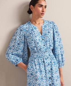 Aspen Cotton Blend Maxi Dress – White Blue Ditsy Carnation Print