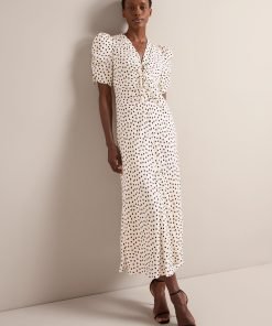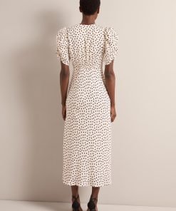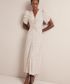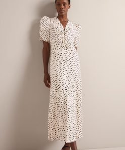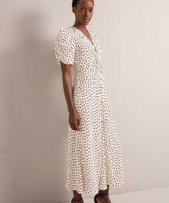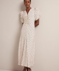 Ophelia Bias Cut Maxi Dress – Ecru Black Polka Dot Print