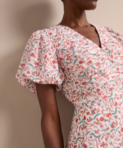 Irina Cotton Blend Midi Dress – Pink Palm Floral Print