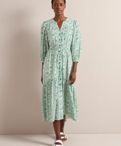 Irina Cotton Blend Midi Dress – Green Palm Floral Print